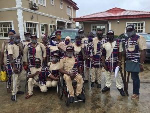Members of the Lagos State Association Of Physically Challenged People (LASPHYCHAP), Kosofe Chapter on Monday, June 22, 2020 during the condolence visit to late Sen. Oshinowo’s résidence in Ijebu Ode.