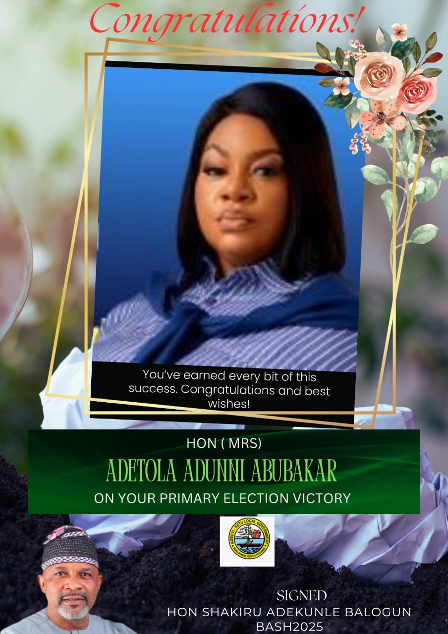 Hon. Shakiru Adekunle Balogun has congratulated Hon. Adetola Oyedele Abubakar on her emergence as the All Progressives Congress (APC) chairmanship candidate for Agboyi-Ketu Local Council Development Area (LCDA) in the forthcoming local government elections.