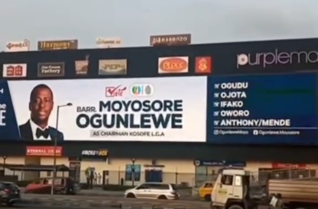 As the July 12 local government elections approach, Executive Chairman of Kosofe Local Government Area, Barrister Moyosore Ogunlewe, has stepped up his re-election campaign with the unveiling of a prominent digital campaign billboard at the Maryland Mall in Lagos.