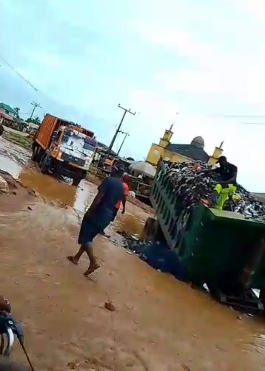 The fully loaded waste truck got stuck in the muddy and waterlogged section of the road, causing hours of gridlock and raising fresh concerns about the environmental and health risks in the community.